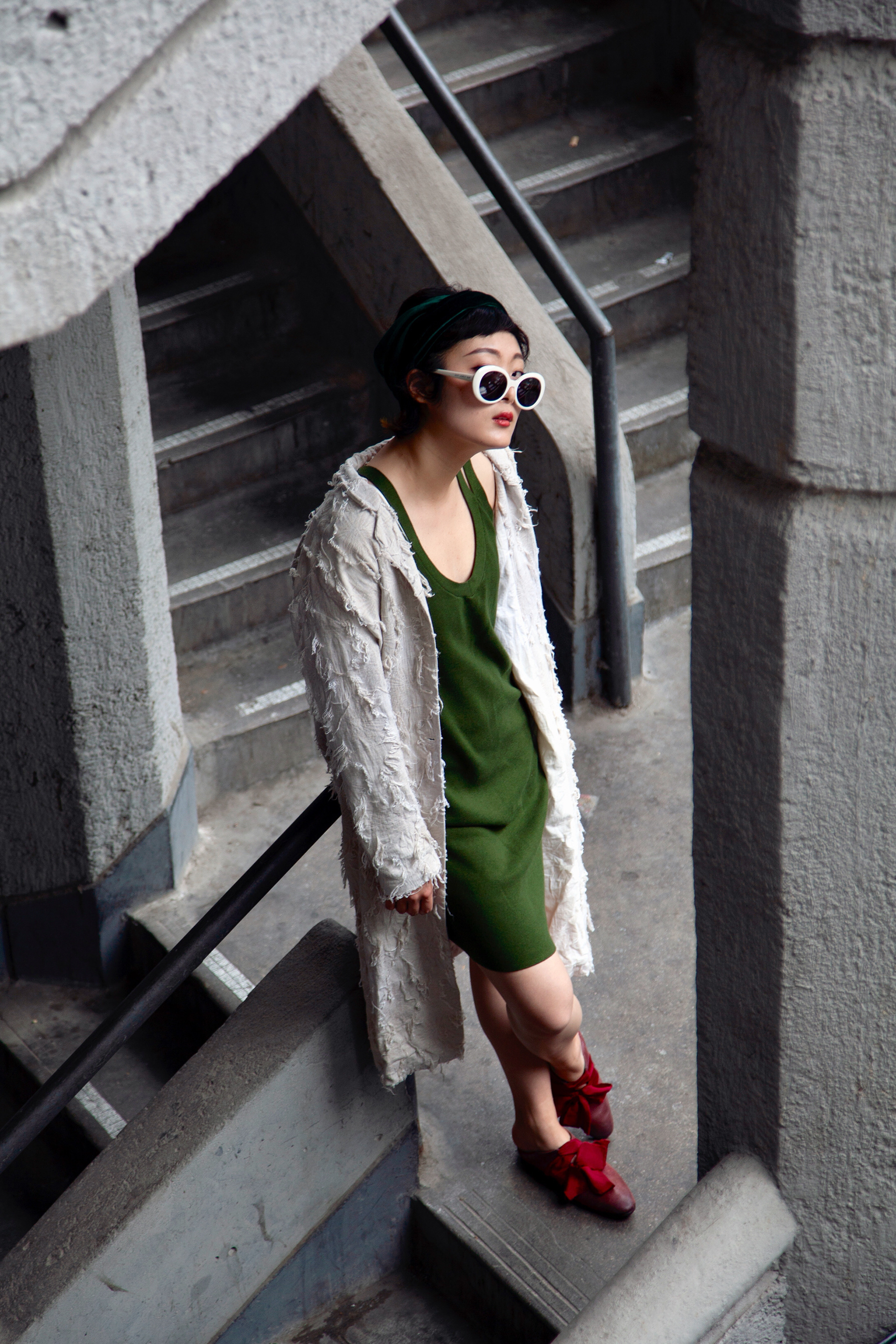 This set of photos takes place in a building in an old Shanghai neighbourhood. This set of pictures make me rethink my hometown, Shanghainese culture, and the local people as a photographer. While shooting the pictures, what I miss the most is the interesting sense of old-fashioned and modern in the city. This theme explores a typical local Shanghainese’s daily life. There is a moment of stress, laziness, boredom, witty, etc… These emotions directly show the chemistry between a person and a neighbourhood, which can immediately bring viewers into the atmosphere, and make them feel like they are travelling in Shanghai. Model: Zhen Xu